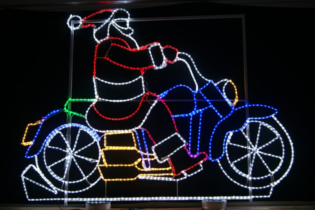 Illuminate your yard with our Biker Santa Decor, built durable and with an impressive size of 59in height x 80in width. This radiant piece of art is designed for commercial use and built to last 50,000 hours. That means you will be captivating all who set eyes on it for years to come: Meticulously crafted with attention to detail, this stunning sculpture promises to become the centerpiece of and yard or street that beholds it.
