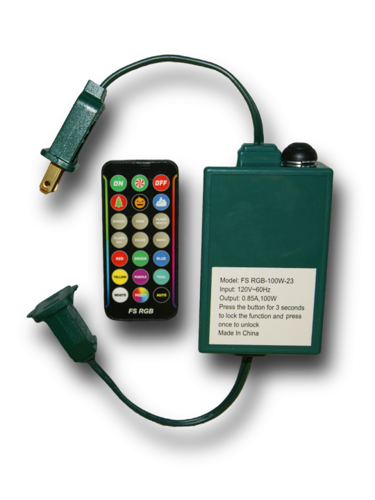 Enhance your lighting experience with our RGB remote and controller. Designed for our MerryGlow C9 light systems, this unique function box and remote allows you to design any landscape with dozens of colors and effects. No App download necessary. This controller box has a lock in feature that keeps it on the the same color and effects even after you unplug and re-plug them in.