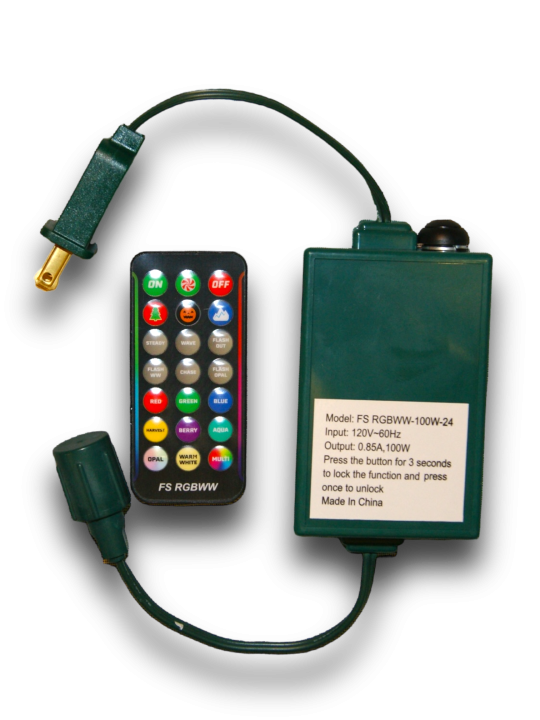 Enhance your lighting experience with our RGBWW remote and controller. Designed for our MerryGlow Commercial grade light systems, this unique function box and remote allows you to design any landscape with dozens of colors and effects. No App download necessary. This controller box has a lock in feature that keeps it on the the same color and effects even after you unplug and re-plug them in.